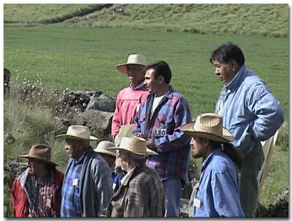 Taller participativo en el habitat del gorrion serrano con miembros de la comunidad de Milpa Alta (D.F.). Foto: D. Cousineau, 2001.